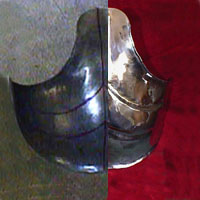What they did was to dip the helm into a barrel of rust-kill and hand it back to him.
